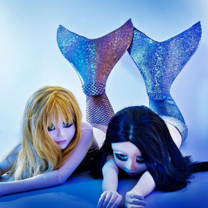 Those are called my “How We See” photos—in fact, in the photos, you can’t see at all because your eyes are closed. When you are wearing the masks it’s hard to see—I imagine it looks a little bit like the afterlife. You do need to be led around. Sometimes I’d be working with my models, and I’d get really involved and say, “Come over here,” and I’d turn around to walk to another spot and I could see they were stepping gingerly from one place to another. I was like, “I’m so sorry, let me take your hand!” But they need to be led around. The whole idea of wearing a mask and being female and barely being able to see was so rich metaphorically. And then I was observing in my crazy research this other anime convention where girls would try to make themselves look like dolls by painting these huge eyes on their eyelids.